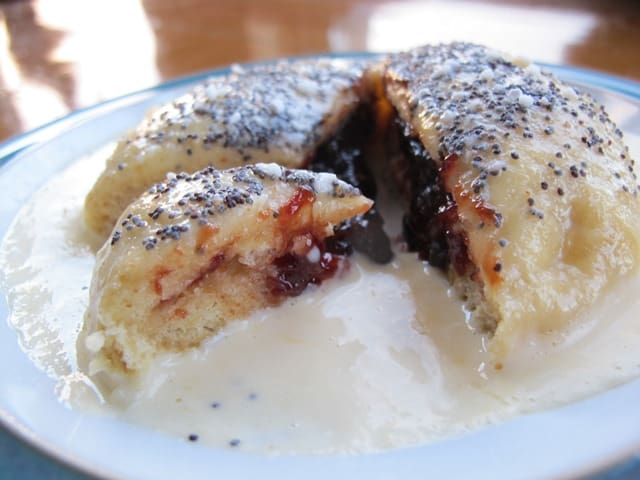 Germknödel are often served with clear butter poured on top, but I much prefer warm homemade vanilla sauce. Finish with a sprinkling of ground poppy seeds and icing sugar. I’ve asked my grandmother for her Germknödel recipe recently so now I’m finally able to enjoy them whenever I want!